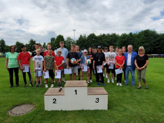 Am Ende des Tages erfolgte noch die Siegerehrung der Plätze 1-3 in den jeweiligen Riegen, die mit Medaillen und Urkunden prämiert wurden. Jeweils einen extra Preis bekamen noch die beiden Schulbesten Sunny Jovanovic (GTK7) und Nadzeia Karp (GTK5), die prozentual gesehen die meisten Punkte in Relation zu einer Ehrenurkunde erreicht hatten. Sunny konnte einen Fußball, Nadzeia einen Volleyball mit nach Hause nehmen.