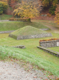 Dagegen mutete der Ehrenfriedhof mit seinen weiten Grünanlagen fast schon idyllisch an bis man sich ins Gedächtnis ruft, dass hier 5500 tote Insassen nach dem Krieg begraben wurden.
