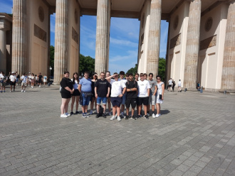Am Donnerstag stand nochmal ein gut gefüllter Tag auf dem Plan. Erste Station war das Museum „The Wall“ nahe der Eastside Gallery, in dem die Geschichte der Mauer vom Bau bis zum Abriss multimedial dargestellt wurde. Anschließend gingen wir die mit vielerlei Motiven bemalten Mauerreste der Gallery ab und fanden viele interessante Bilder für ein Fotoandenken. Über die Spree ging es zu Fuß weiter nach Berlin Kreuzberg, wo wir kurz Rast beim Baumhaus machten. Ein wenig bekanntes, aber umso interessanteres kleines Detail der Geschichte Berlins Es wurde von einem türkischen Mitbürger Anfang der 80er Jahre auf einer weder von Ost noch West beanspruchten Verkehrsinsel gebaut, der dort ursprünglich nur Gemüse anbauen wollte, aber so nach und nach aus Sperrmüll usw. ein richtiges Häuschen baute. Mit der U-Bahn ging es dann Richtung Siegessäule. Vorbei am Schloss Bellevue – dem Amtssitz des Bundespräsidenten – überlegten wir, uns schon, ob wir in der Hitze uns die fast 300 Treppen bis zur Aussichtsplattform antun sollten. Aber letztendlich nahmen fast alle diese Tortur auf sich und konnten so die tolle Aussicht von der „Goldelse“ aus genießen. Anschließend stand eine kurze Besichtigung der Gedächtniskirche und des Neubaus der Kirche (der „Puderdose“ und dem „Lippenstift“) auf dem Programm, gefolgt von einem Abstecher ins Nobelkaufhaus KaDeWe. Dort waren wir doch sehr überrascht, wie viel selbst kleine Alltagsartikel kosten können, nur weil ein bestimmter Markenname draufsteht…Nach einer kurzen Verpflegungspause beim Bikini Einkaufscentrum fuhren wir mit der U-Bahn zum gemeinsamen Abendessen ins Steakhaus Doreedos. Dort konnten wir nochmal alle zusammen uns auf das Ende der aufregenden Fahrt einstimmen.