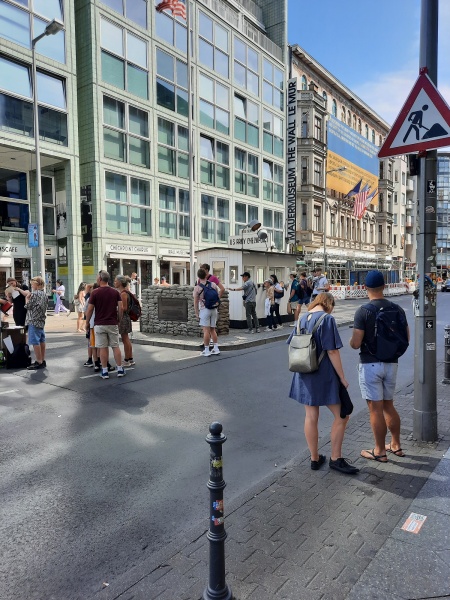 Zu Fuß ging‘s weiter Richtung Checkpoint Charlie. An diesem wohl berühmtesten ehemaligen Grenzübergang Berlins nutzen einige die Gelegenheit, ein fotografisches Andenken dieses denkwürdigen Ortes zu machen.