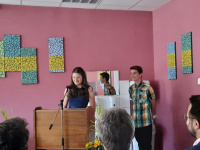 Die beiden Klassensprecher Christina Beer und Jonathan König sprachen ebenfalls über die vergangenen Jahre, die viel zu schnell vergangen sind. Auch sie griffen wichtige Ereignisse und Stationen dieser drei Jahre auf und bedankten sich bei allen Lehrkräften mit Präsenten.