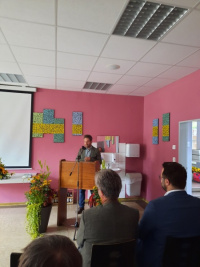 Zurück in der Aula gab es noch die offizielle Übergabe des neuesten „Spielzeugs“ – ein Airhockey-Tisch. Dieser wurde von den Technikern der GTK9 mit Herrn Burger in Kooperation mit dem BSZ Wiesau gebaut und konnte nun feierlich enthüllt werden. In einem ersten Match bewies Frau Jacobi erstaunliches Reaktionsvermögen und konnte sich gegen einen Schüler durchsetzen.